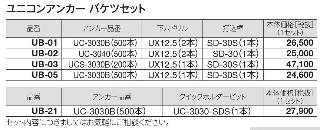 ユニカ ユニコンアンカー バケツセット